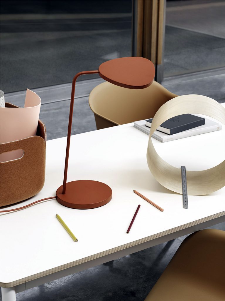 Bardzo ważne jest profesjonalne oświetlenie, które umożliwia odbiór treści bez dodatkowych cieni. Dużą popularnością cieszą się modele: AQ01 z Fritza Hansena i Leaf z Muuto.